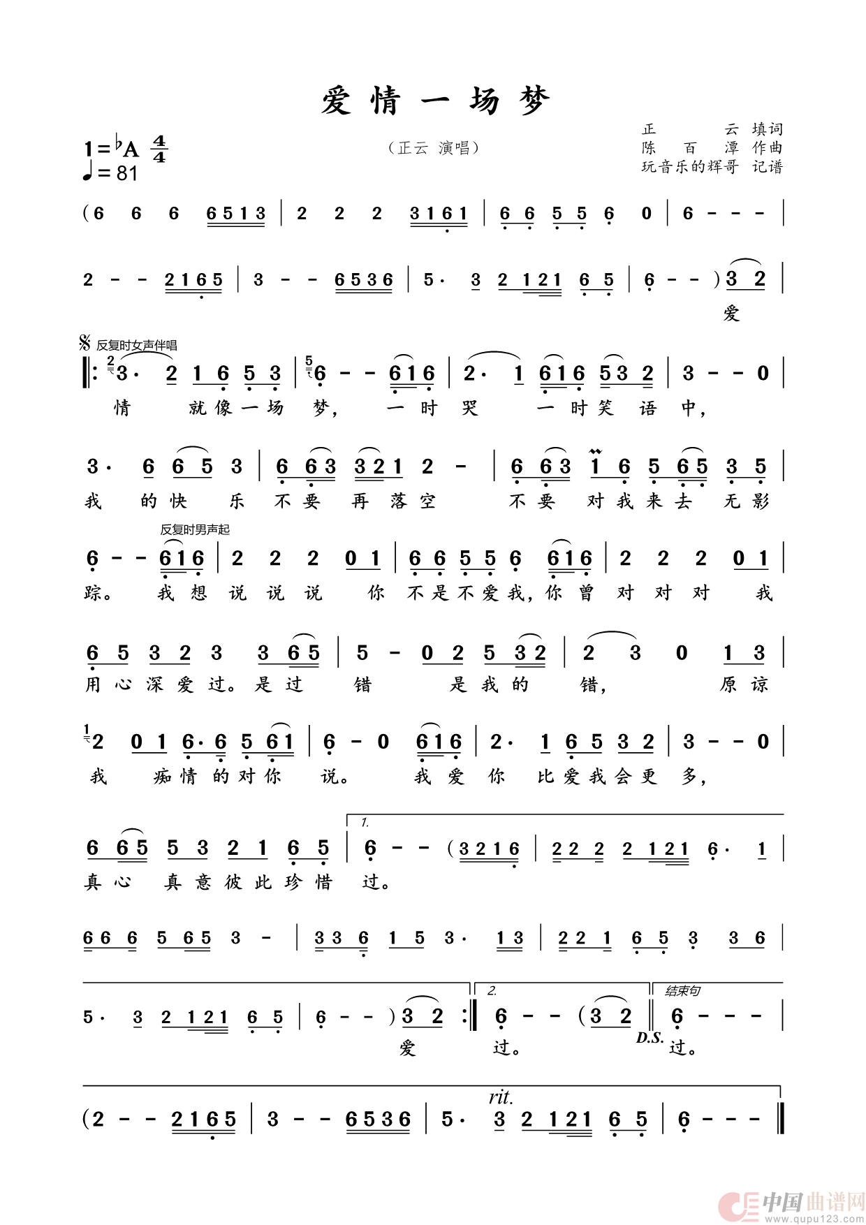 陈百潭曲谱推荐天生一对爱情一场梦(——闽南语歌曲《爱情一阵风》原曲)爱拼才会赢(闽南方言歌曲)暗帐我一定要找到你(正云)一定要成功一条手巾仔(闽南语演唱)追求(闽南语演唱)祝福(陈百潭词曲、闽南语演唱)绵绵细雨的夜晚水中月(闽南语演唱)永远不服输心在故乡(——《风飞沙》原曲)采花谣勇敢的人爱情一阵风(闽南语)没有归宿的落花你情我愿问心无愧落魄的心情