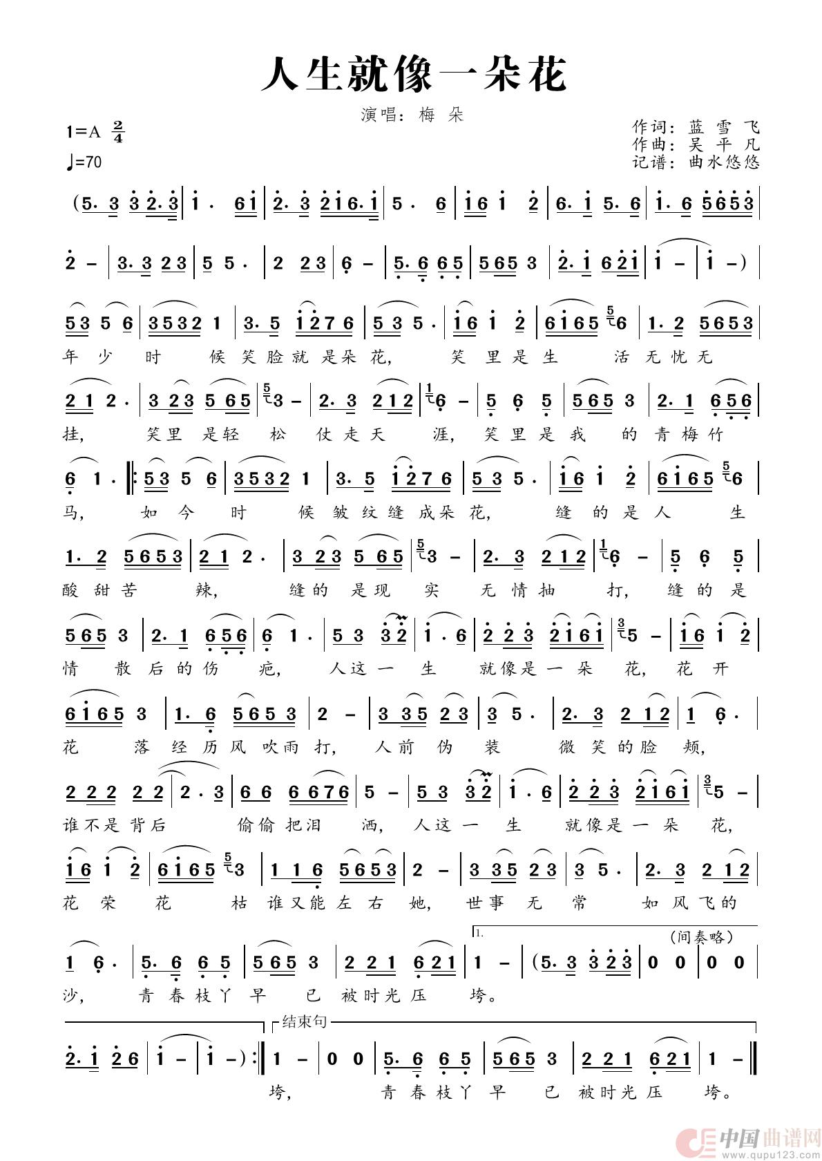 人生就像一朵花相关五线谱