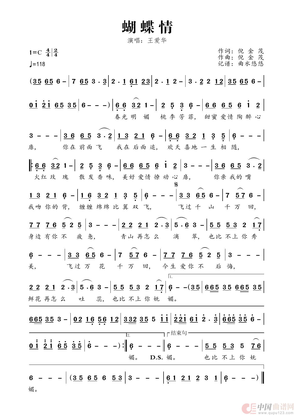 蝴蝶情相关五线谱