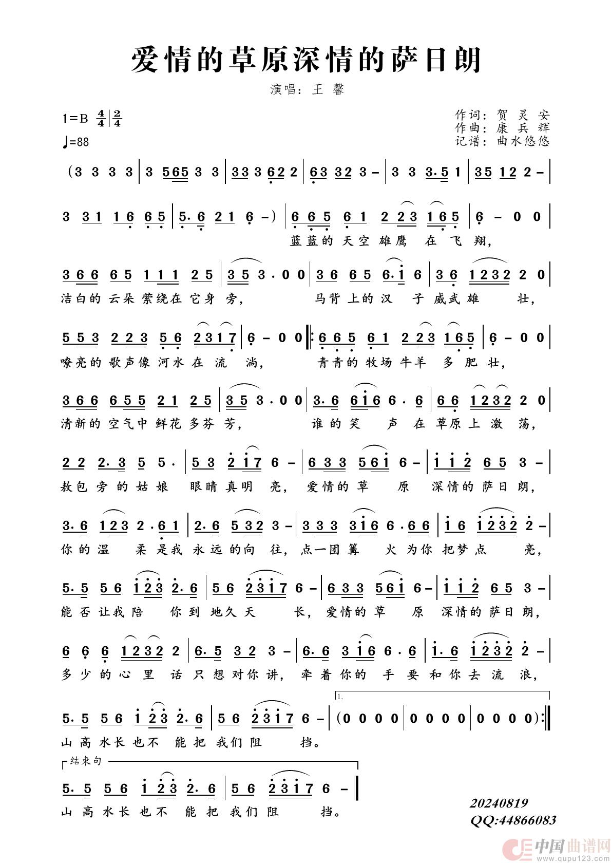爱情的草原深情的萨日朗相关五线谱