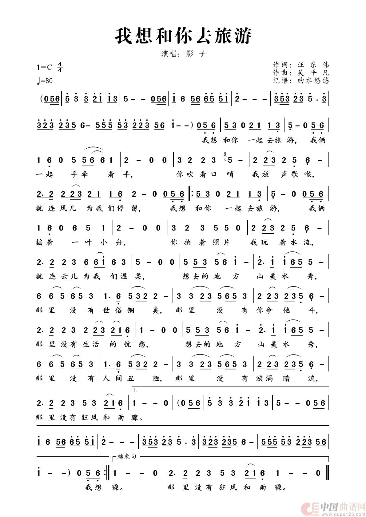 我想和你去旅游相关五线谱