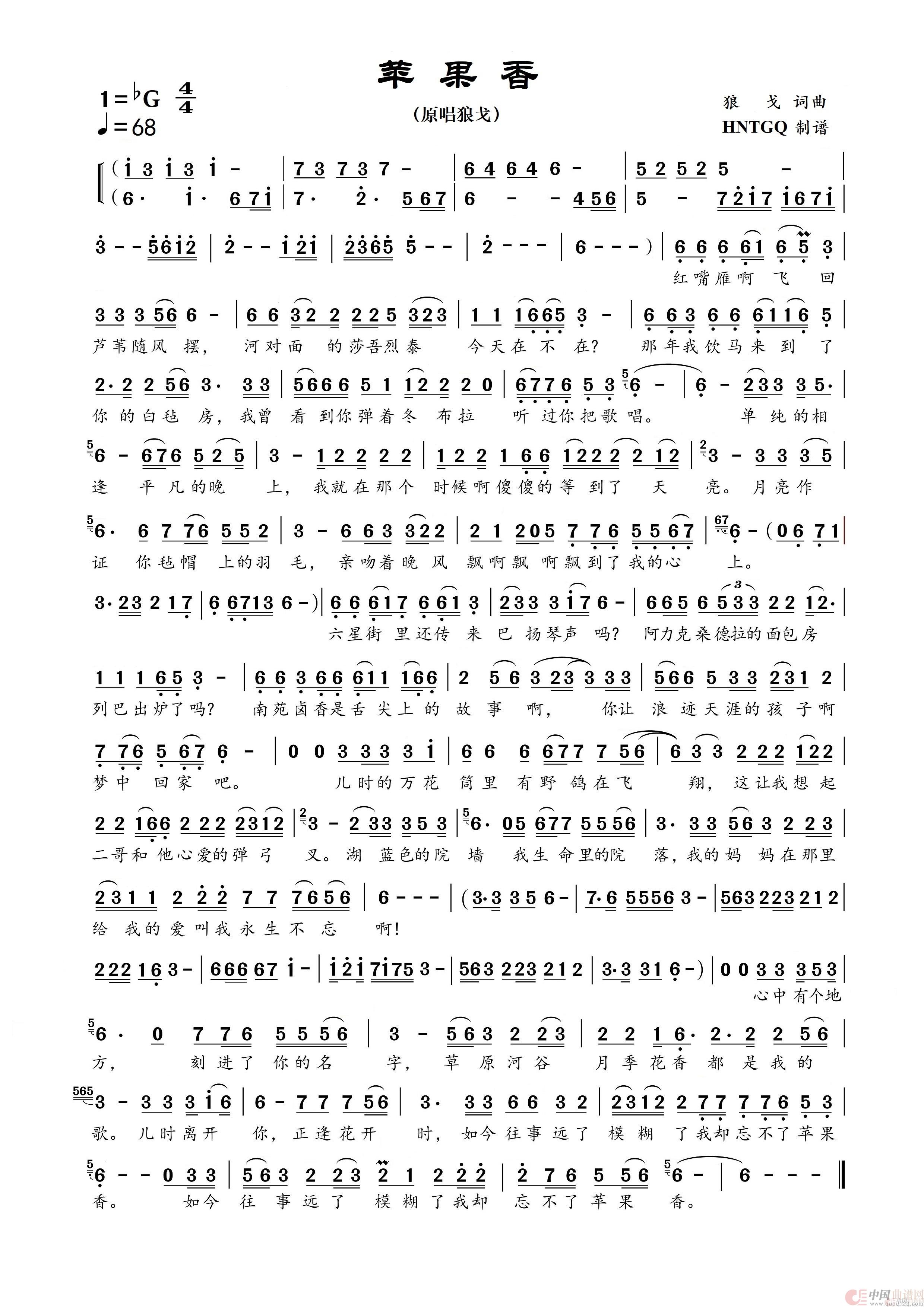 苹果香相关五线谱