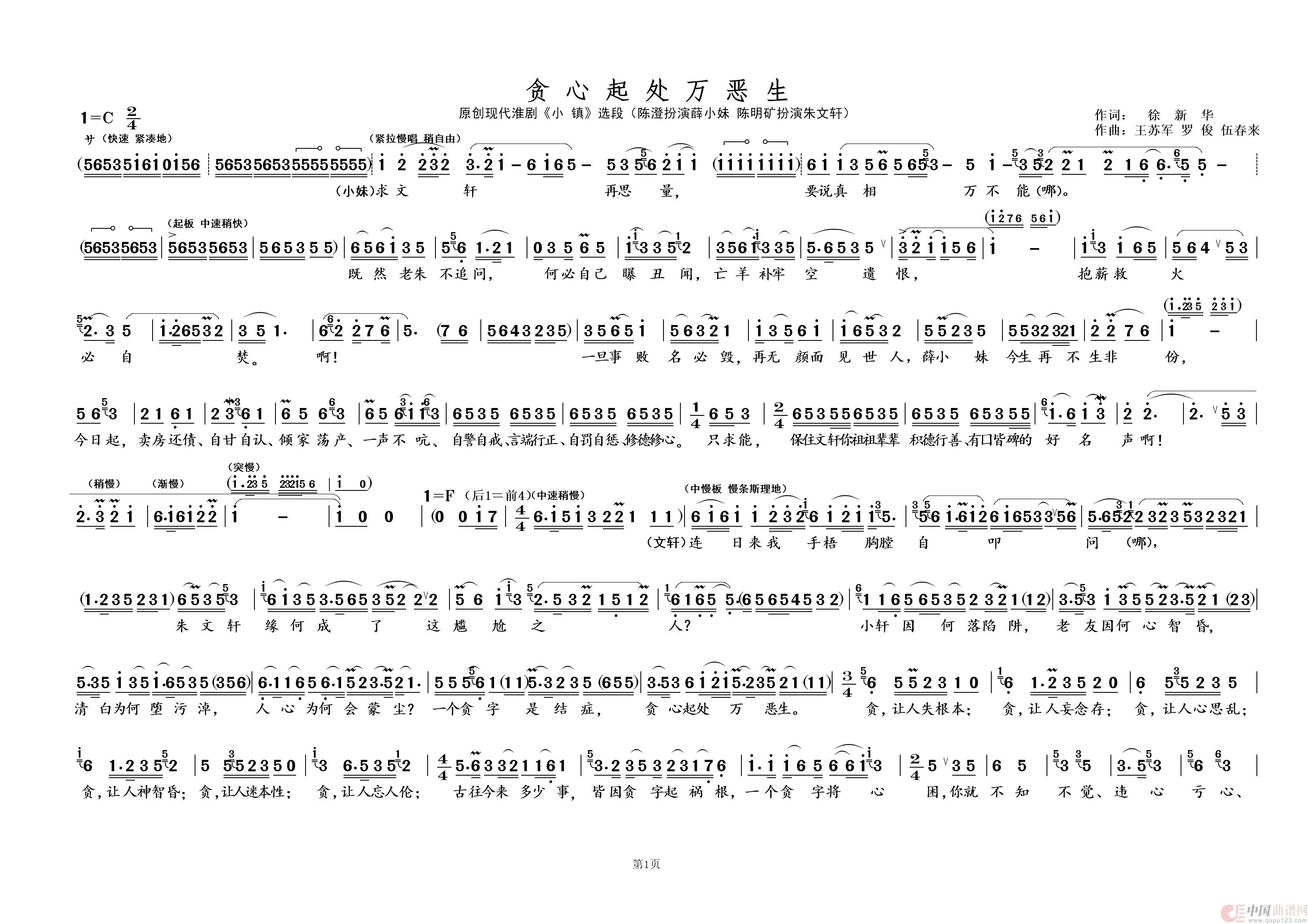 贪心起处万恶生①(淮剧 · 陈派澄腔)相关五线谱