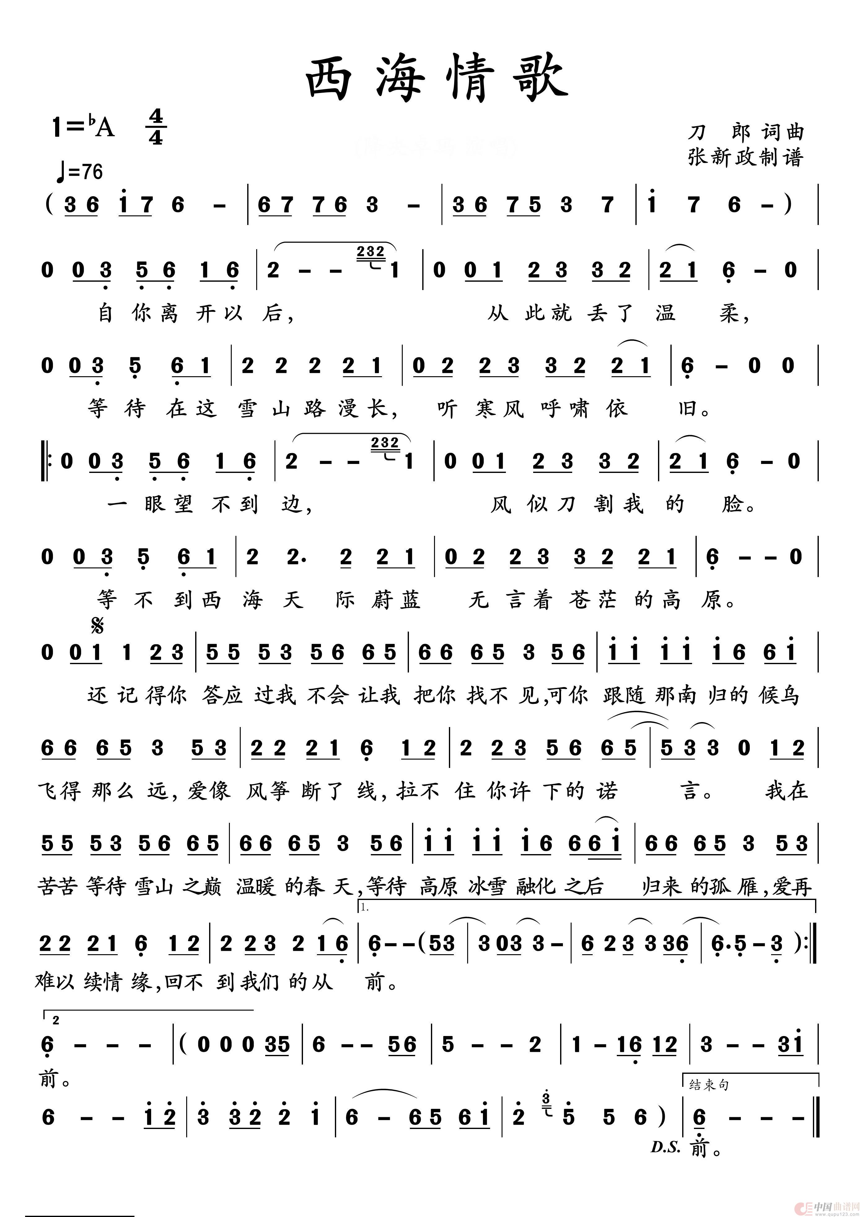 西海情歌相关五线谱