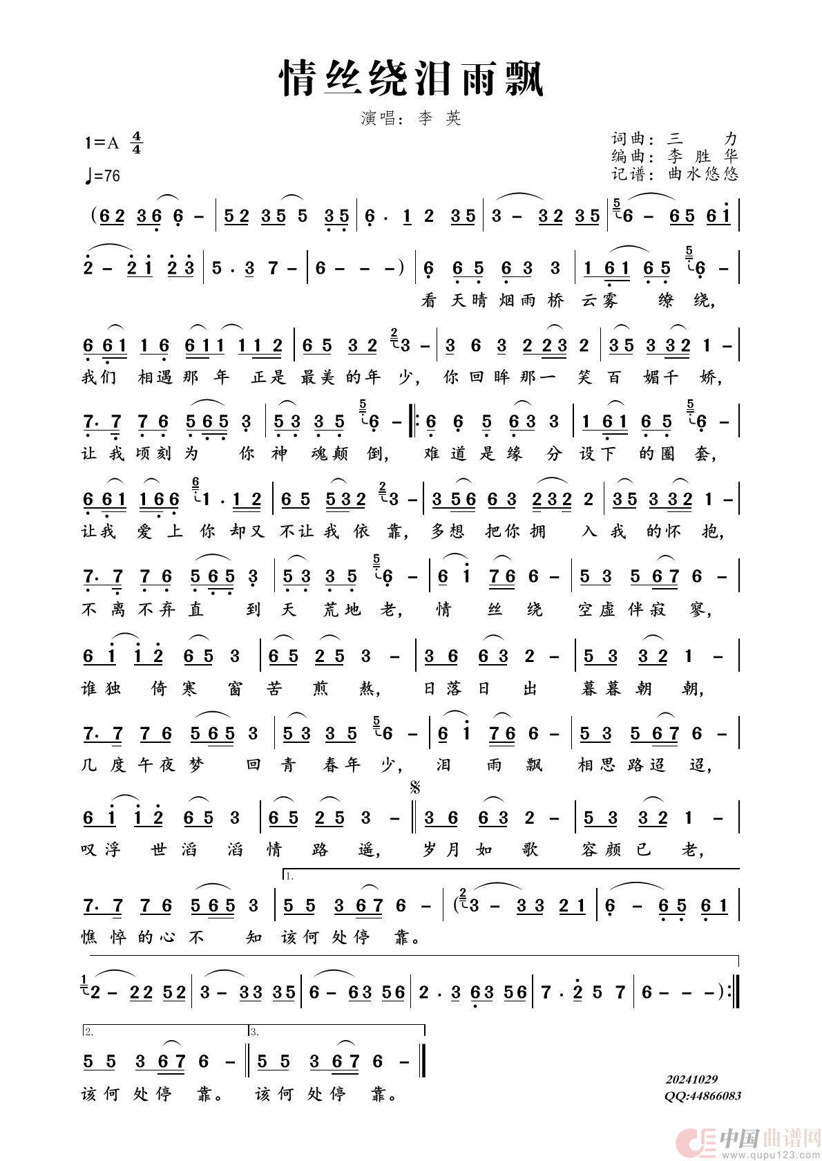 三力曲谱推荐爱你要了我半条命漫漫相思偷敲窗岁月的河深浅都趟过甘心困在爱情的漩涡也许爱过就已足够回忆在午夜重叠想想走过的这些年饮尽岁月惆怅为什么爱的模棱两可哪有一方净土感情在降温半生蹉跎半生凉还有多少说不出的苦孤单的心已受了伤斟杯人间月色酒浇半生愁爱有多美心有多累谁能陪我到最后(雨中百合)撞了南墙不醒悟昨天的情今夜的梦