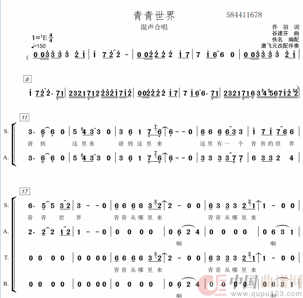 世界赠予我的(大川编合唱)(四声部合唱简谱)