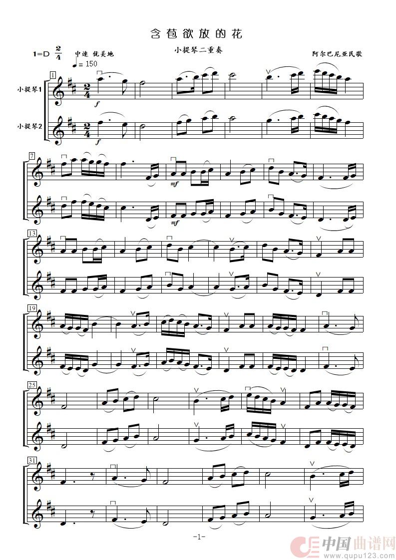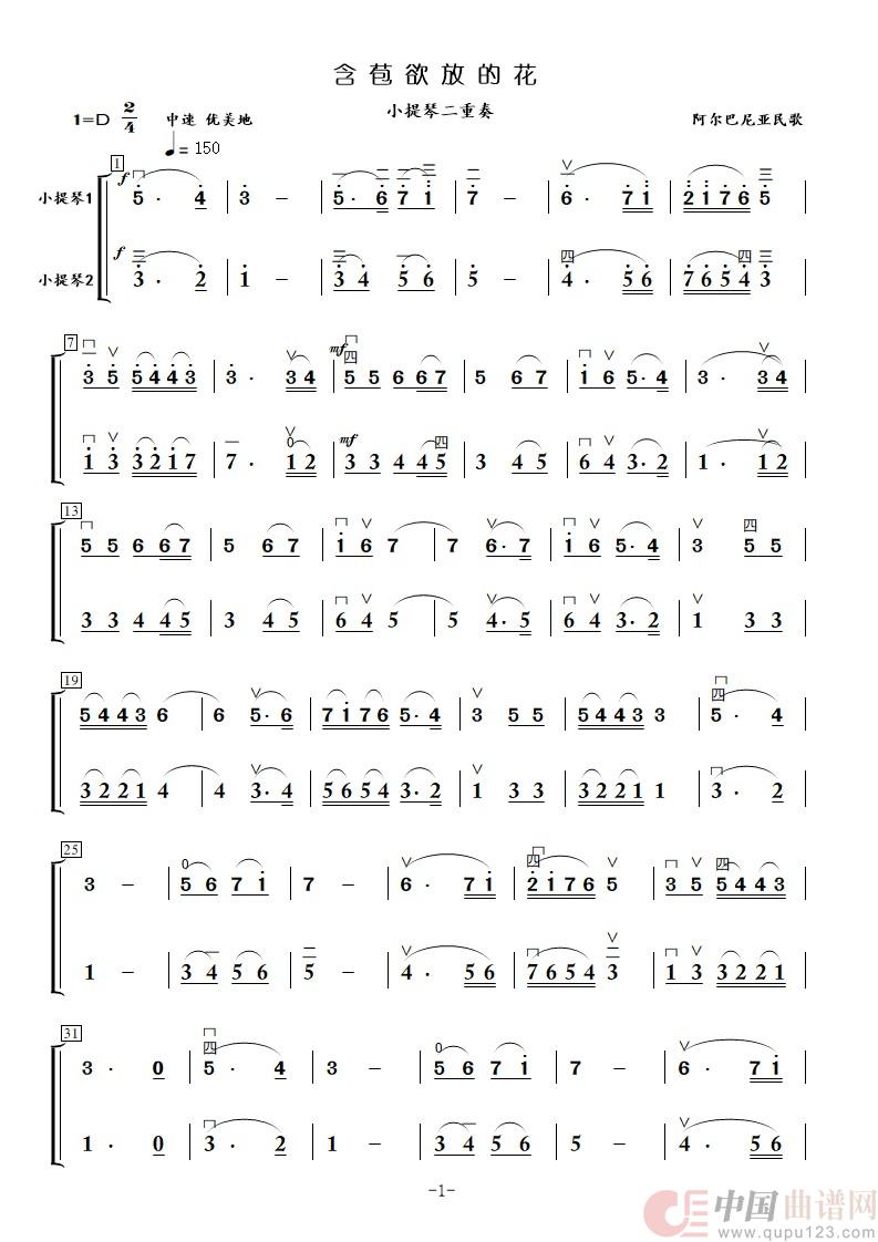 含苞欲放的花(小提琴二重奏(简谱+五线谱))