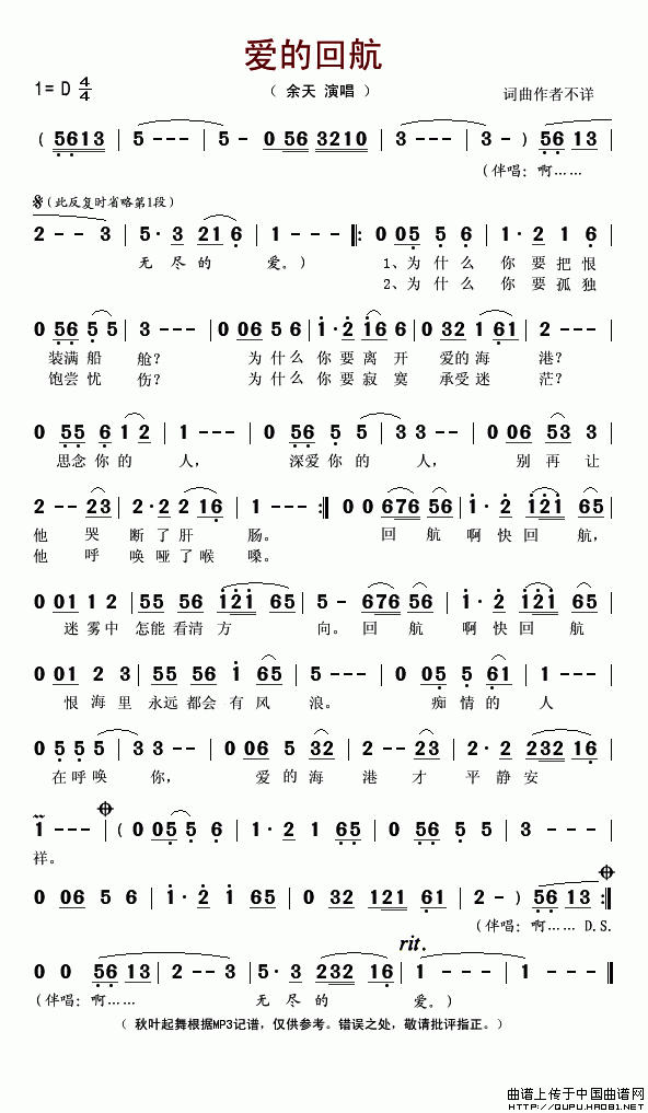 爱的回航相关五线谱