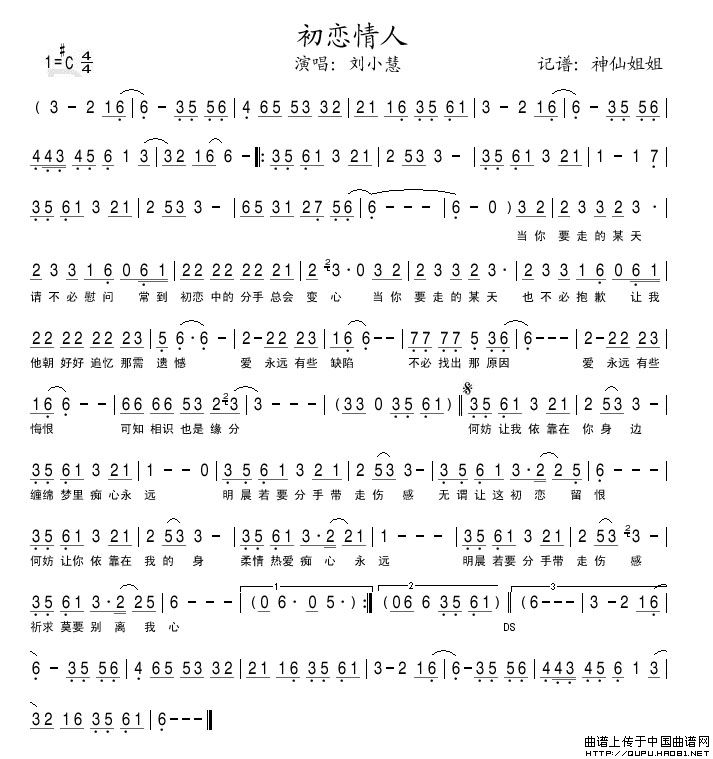 初恋情人相关五线谱