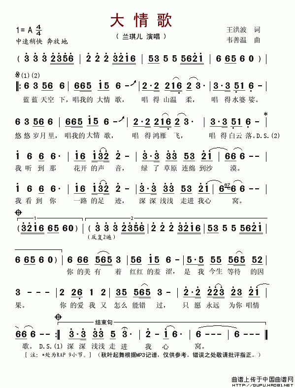 大情歌相关五线谱