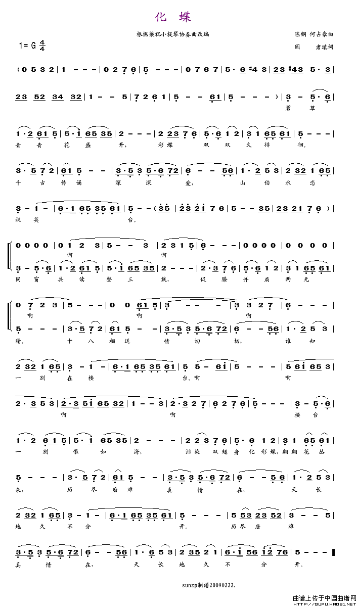 化蝶(阎肃词 陈钢、何占豪曲)相关五线谱