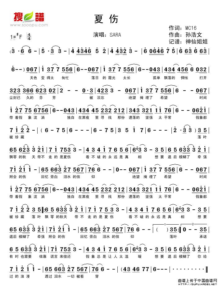 夏伤相关五线谱
