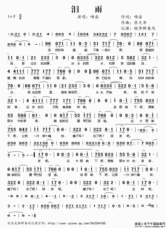 泪雨相关五线谱
