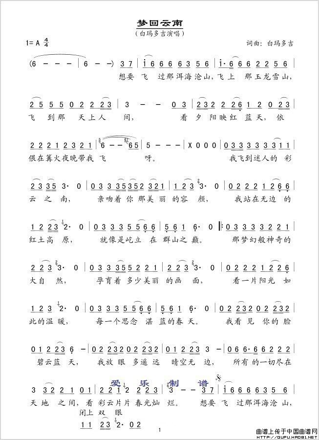 梦回云南相关五线谱