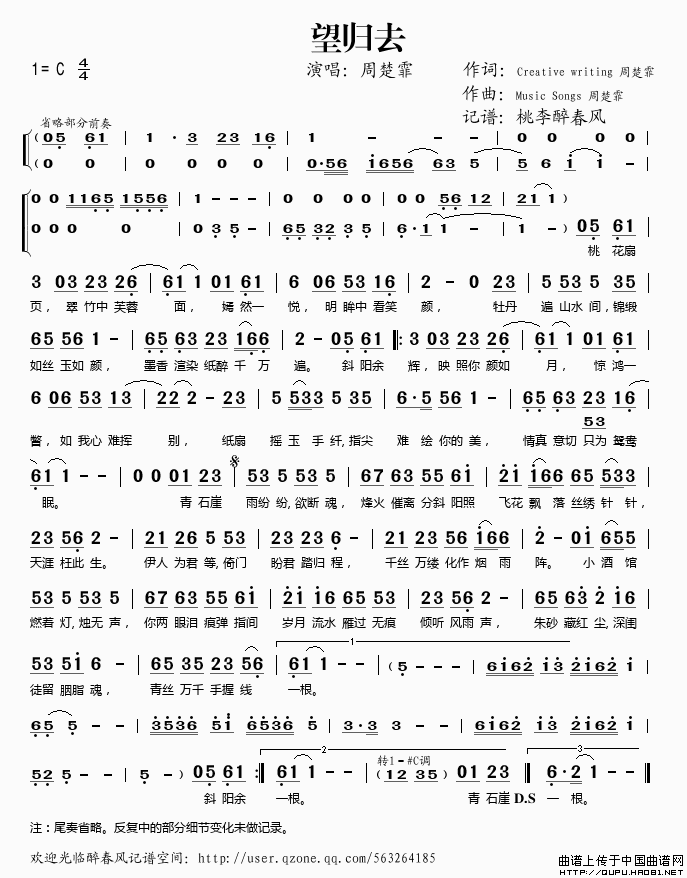 望归去相关五线谱