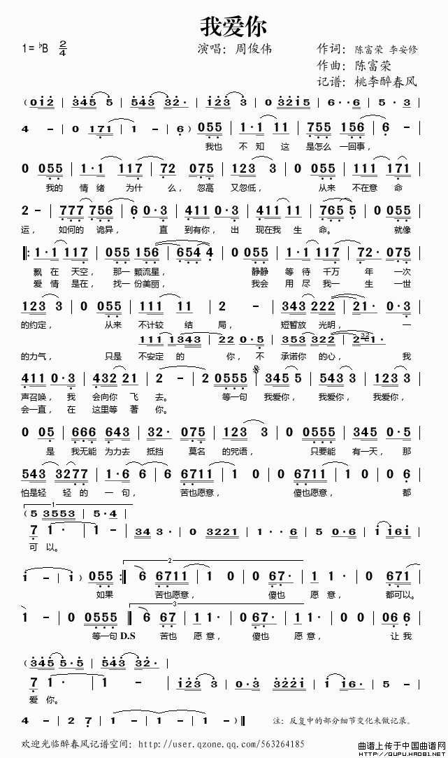 我爱你(陈富荣词 陈富荣 李安修曲)相关五线谱