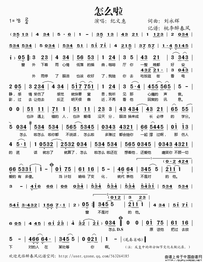 怎么啦相关五线谱